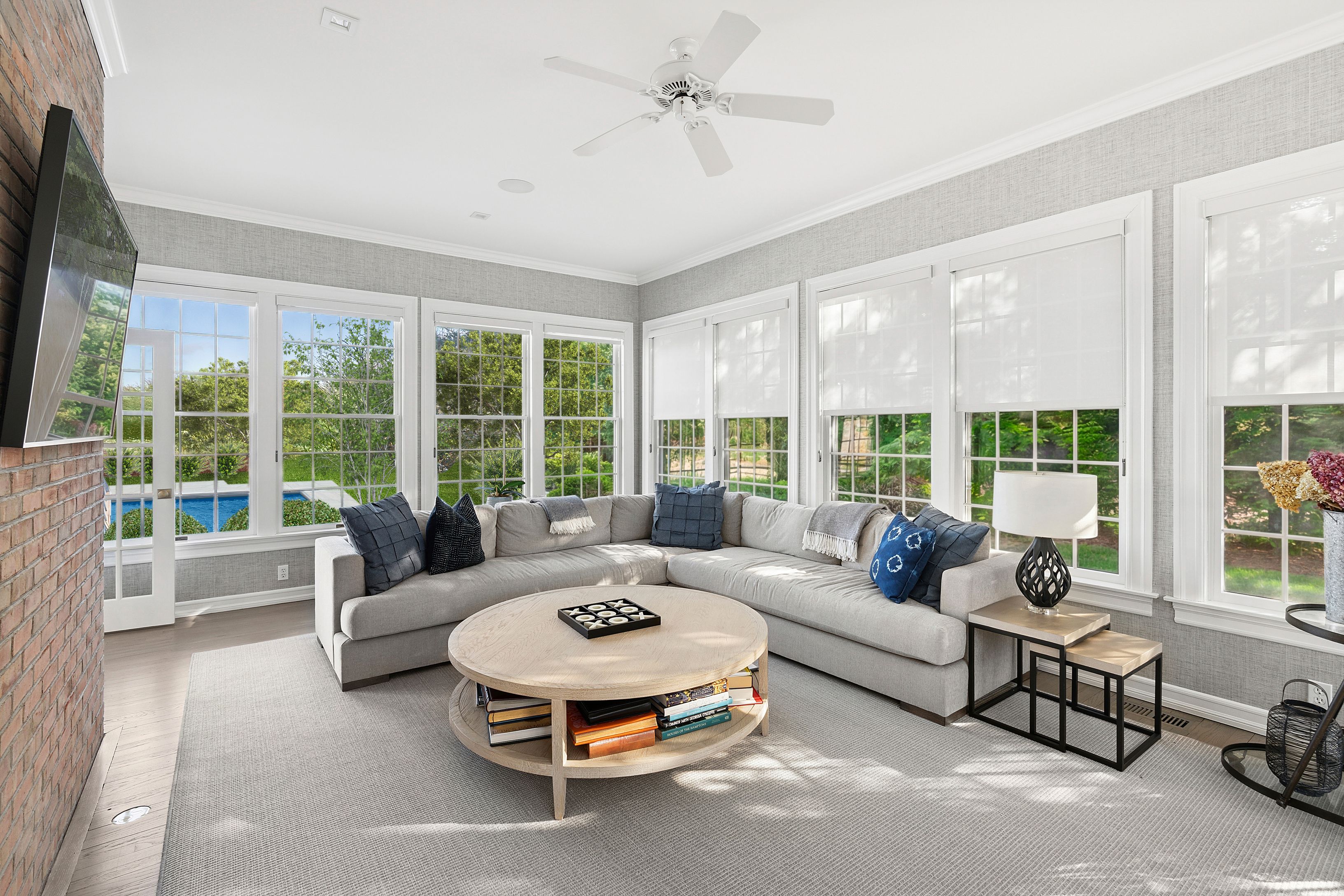 Situated on a quiet cul-de-sac south of the highway in Sagaponack, this extensively updated, sun-filled Hamptons classic backs up to an agricultural easement and features a full-size Har-Tru tennis court. The residence also offers five bedrooms, five full baths, a half bath and a three-car attached garage. The main level includes a spacious living room with fireplace and multiple doors to the rear deck and patio, a sunroom with oversized windows, formal dining room with full wet bar, private office, a new eat-in kitchen fully equipped with stainless steel appliances. The kitchen also includes an oversized island, breakfast nook and seating area with wood burning fireplace. A large butler's pantry with additional full-size refrigerator, freezer and wine storage as well as a laundry room, powder room, full pool bath and three-car garage complete the main level. The second floor features an expansive, vaulted primary suite with sitting room, both overlooking the pool and tennis court, with double-sided fireplace, two walk-in closets, and a luxurious primary bathroom with radiant-heated floor. Three additional en-suite bedrooms, a guest bedroom, windowed gym, laundry room, and generous storage complete the upper level. The lower level is unfinished, offering expansion potential. Outdoor amenities include a covered dining pavilion with ipe decking, ceiling heaters and a fan, a full outdoor kitchen, a second ipe deck with a retractable awning, a 48' x 18' heated gunite pool with spa, Har-Tru tennis court, generator, a beautiful winding approach and mature landscaping for privacy. Ideally located south of the highway, just minutes from the Sagaponack General Store and the Hamptons' finest ocean beaches.